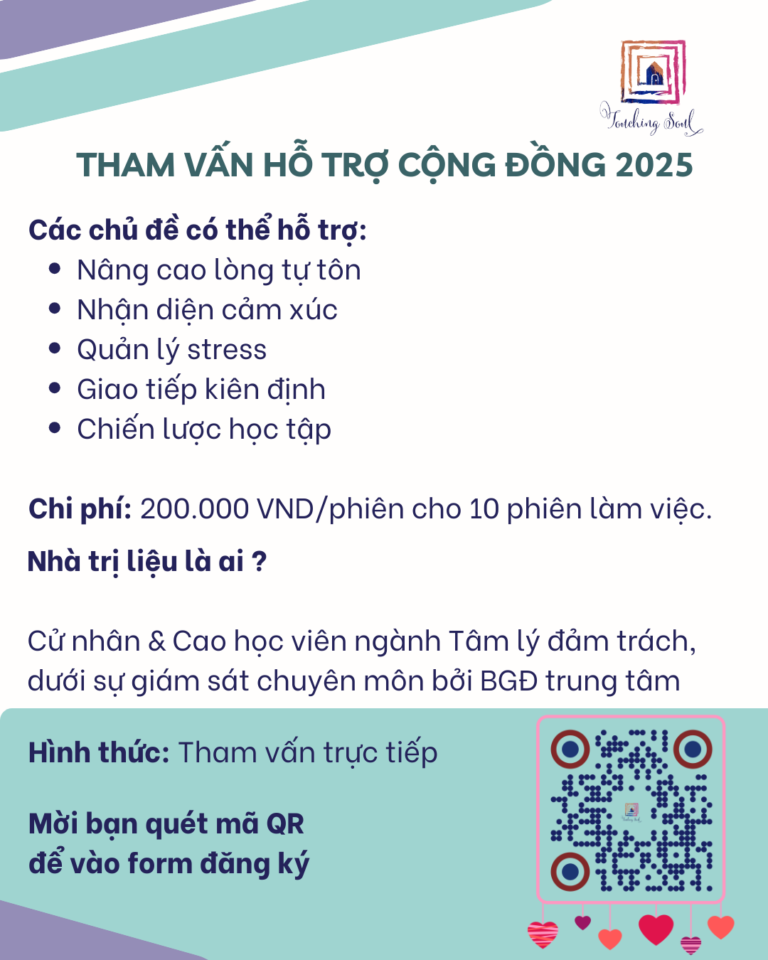 Chúng tôi bắt đầu câu chuyện của mình từ 2016 với tên gọi Văn Phòng “Thực Hành Tâm Lý” và hiện tại là Touching Soul Center với mong muốn kiến tạo một nơi làm việc chuyên nghiệp, là nơi ươm mầm, kết nối và giữ lửa cho những nhà chuyên môn trẻ tiếp bước trong lĩnh vực Trị liệu tâm lý tại Việt Nam.